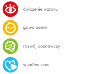 - Pokazuj maluchowi detale ilustracji i zachęć do tego samego – pilnuj, aby robić to palcem wskazującym.