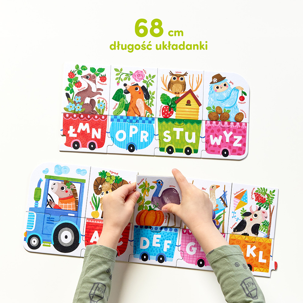 - Puzzle Literkowy Traktor pozwalają na wesoło rozpocząć przygodę z czytaniem i pisaniem.