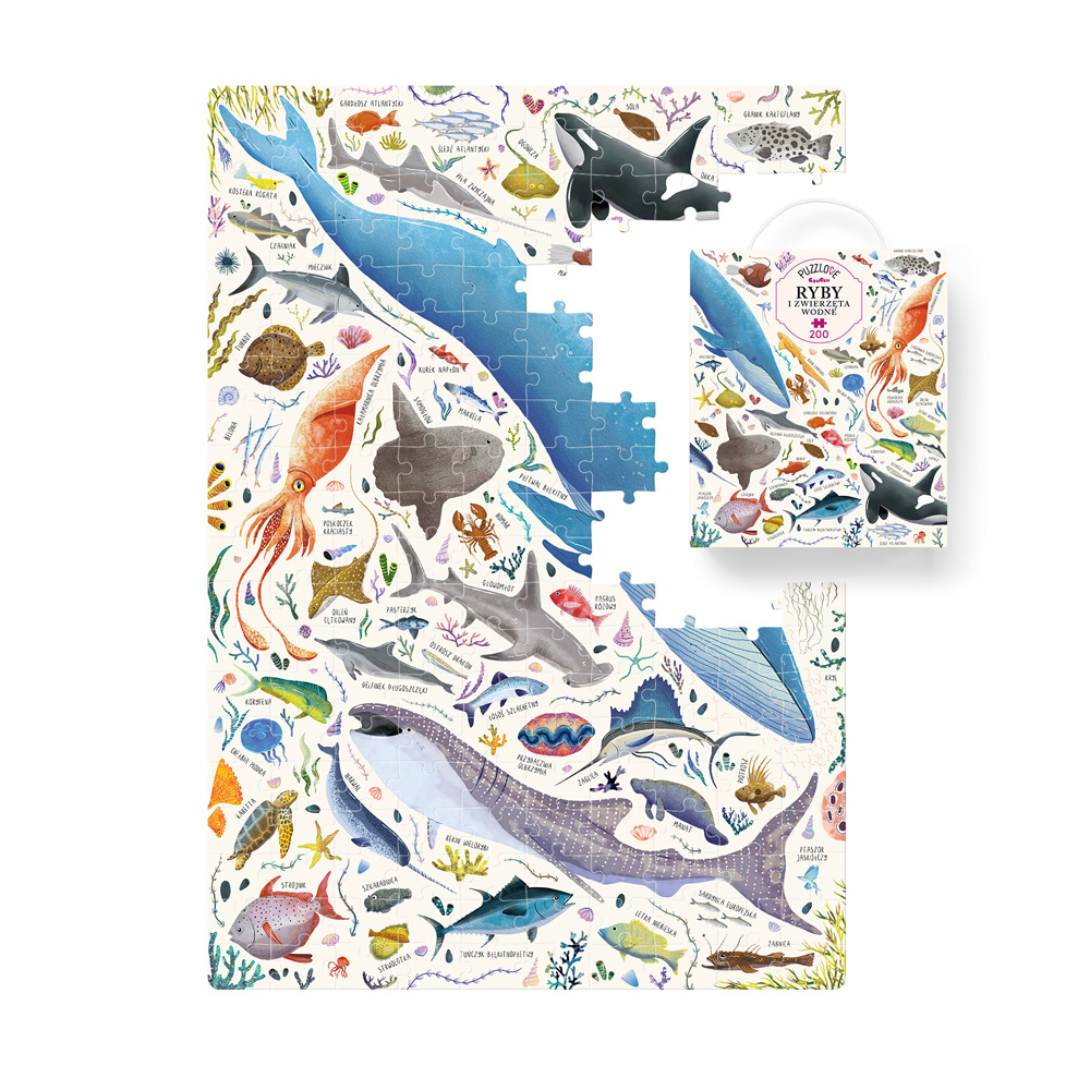 Kto mieszka w morskich głębinach? Zanurzyliśmy się w oceanie wyobraźni i morskiej wiedzy i wyłoniliśmy ułamek fascynujących stworzeń. Połączyliśmy piękne ilustracje, pasjonującą tematykę, dodaliśmy wielką radość układania. Efektem są wspaniałe, 200-elementowe puzzle. To świetny pomysł na prezent, puzzle dla starszaków i dorosłych i wspólne układanie.