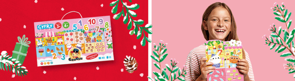 3,2,1… Zabawa start! Kolorowe króliczki zapraszają przedszkolaki do nauki cyfr i liczenia – w zestawie znajdują się duże puzzle, dokładane cyferki i obrazki, a także poradnik pełen pomysłów na rozwijające aktywności.